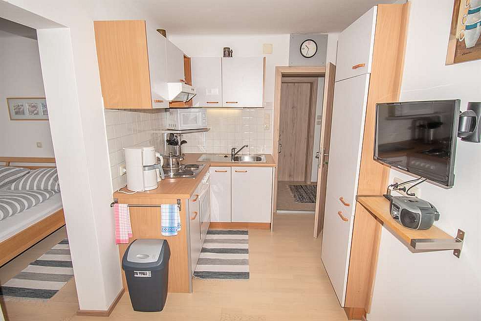 - komplett ausgestattete Küchenzeile mit Geschirrspüler und Essecke
